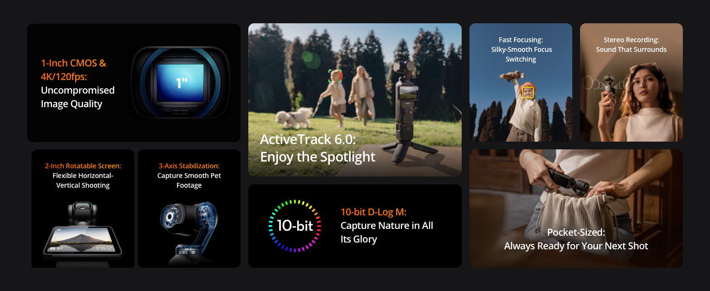 無論是旅行、與家人一起在公園裡享受下午,還是視頻博客您的日常生活,都可以使用 Osmo Pocket 3 在移動中捕捉令人驚嘆的流暢鏡頭。